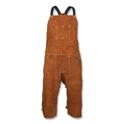 Loading product details...Side Split Cowhide Apron, 4348 Split Leg Bib, 2-Chest Pockets, Cotton X-Back Straps, 24 in W x 48 in L, D-Rings, Bourbon Brn